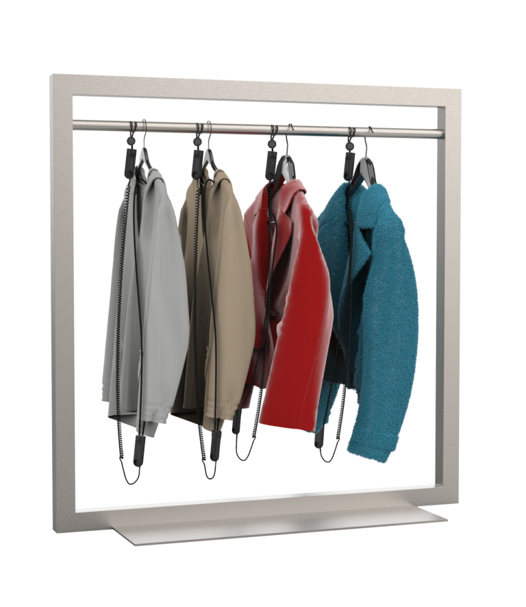La solución de seguridad de doble cara protege la mercancía y se ancla a una gran variedad de accesorios.